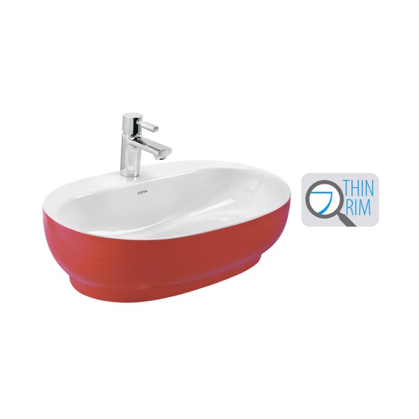 Cafe Duo Red Thin Rim 600x400x160mm Table Top Colour Wash Basin More Details