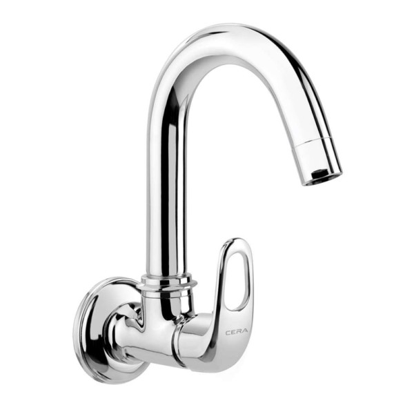 Carbon Sink cock wall mounted with 150 mm (6°) long swivel spout and wall flange More Details