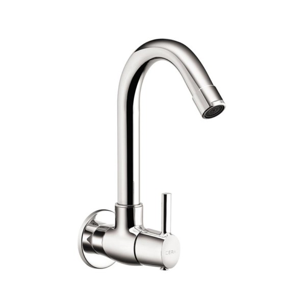 Ripple Sink cock (wall mounted) with 165 mm (6.5inch) long swivel spout and wall flange More Details