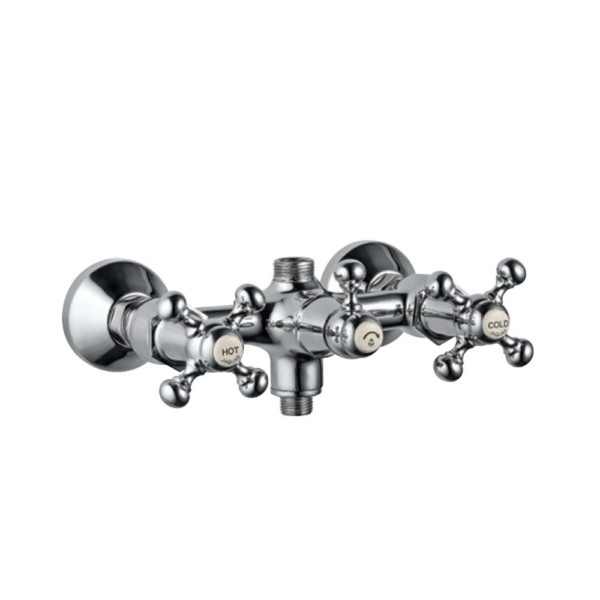 Queens Exposed Wall Mixer with Provision Only for Overhead Shower & Hand Shower with Connecting Legs & Wall Flanges