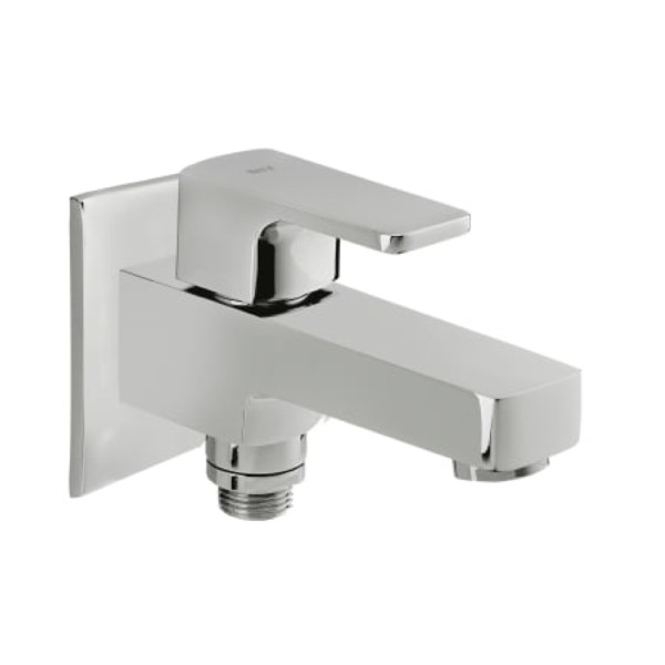 | Product | Escuadra Cold Tap Two Way Bib Cock Two-Way Bib Tap With Bottom Outlet For Connecting Health Faucet, Decor Base Plate, Easy Clean Brass Nut Aerator, Quarter Turn Operation Chrome |