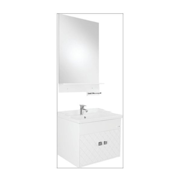 Orchid Mirror Cabinet 650x140x730mm White with C845D46 Orchid Base Cabinet 650x510x800mm White PVC Floor Mounted